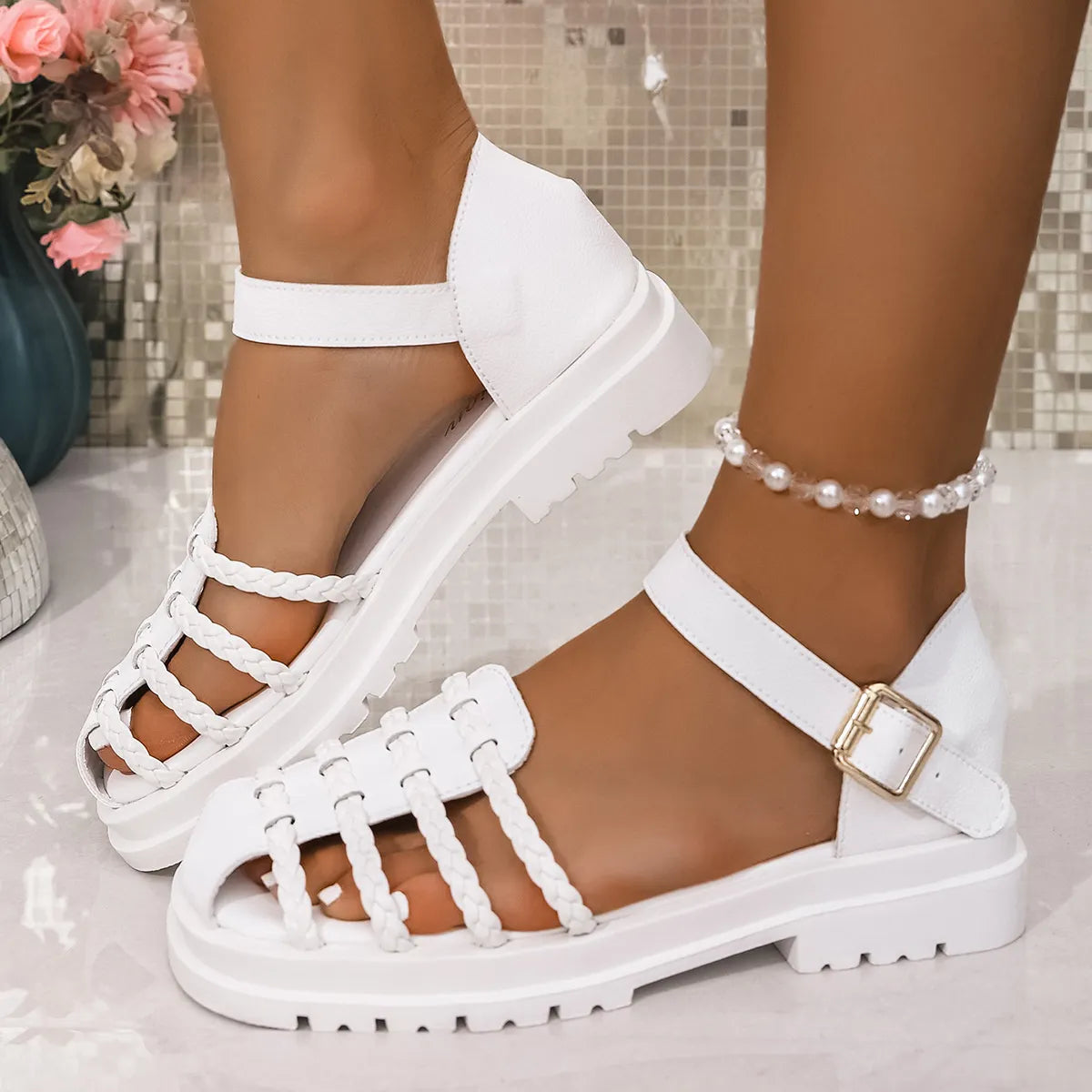 Braided Ankle Strap Sandals