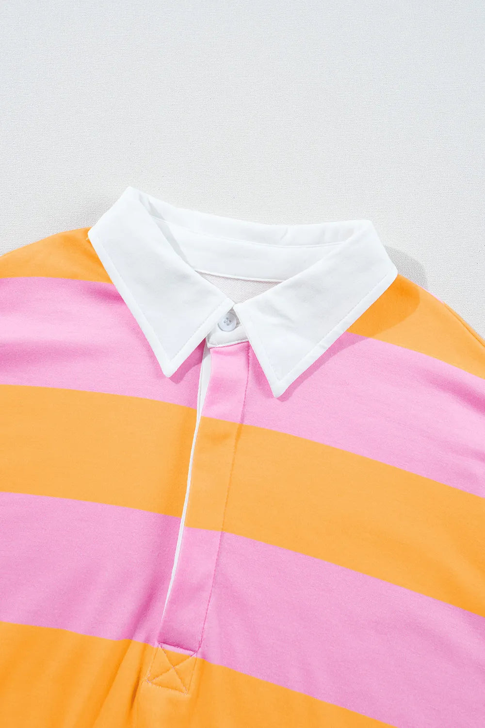 Contrast Striped Collared Neck Long Sleeve Sweatshirt